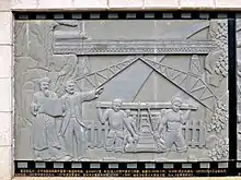 At Hekou, the square outside of the new Hekou North railway station (opened 2014) is decorated with reliefs depicting the history of the transportation and economy in the region, with a special focus on the Kunming–Haiphong railway.