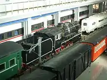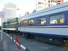 Twice-a-week cross-border passenger service operated as late as 2000; the second-class passengers had to transfer from a Chinese train to a Vietnamese train at the border station, while the first-class car passengers could remain on board as their car was transferred to the train across the border. However, landslides caused frequent delays.[9] Eventually, in 2005[10] the passenger service on the Chinese section of the railway (the Kunming–Hekou railway) was terminated,[11][12] and most of the passenger coaches were donated to Myanmar.[10]