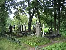 The Kuntsevo Cemetery (Russian: Ку́нцевское кла́дбище, romanized: kúntsevkoye kládbishche) is a cemetery servicing Kuntsevo, Moscow. It is located on the bank of the Setun River, to the south of the Mozhaisk Highway (the continuation of the Kutuzovsky Prospekt).[1] The local five-domed church was commissioned in 1673 by Artamon Matveyev. The cemetery is administered as part of the Novodevichy Cemetery complex.