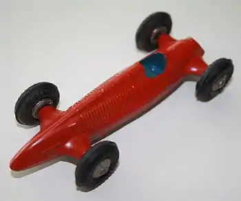 Around 1947 Kurt Becker KG produced a series of die-cast miniatures of the pre-war Auto Union racing car in scale 1:43. The miniature was of the first racing car of the Auto Union series, the Type A, more specifically of the very rare 'long-tail' version. This car was raced on the AVUS in Berlin in 1934 by German racing car driver August Momberger. The choice of model by Kurt Becker KG was unusual, since the Auto Union racing cars had their heyday in the 1930s as the flagships of Nazi-Germany, and never returned to the race tracks after the war.