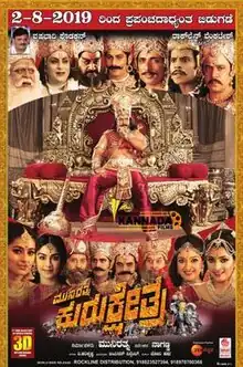 Kurukshetra (transl. Kuru's place) is a 2019 Indian Kannada-language mythological war film[3][4] written by J. K. Bharavi and directed by Naganna. The story is based on the epic poem Gadhayuddha by Ranna,[5][6][7] which itself is based on the Indian epic Mahabharata.[8][9] The story is centred on Duryodhana, the Kaurava king.[10] The film was produced by Munirathna.[11]