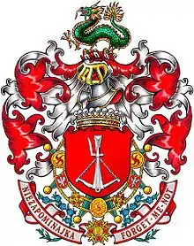 - KUSZA II "On a red field, a silver crossbow, without the arrow, pointing upwards"