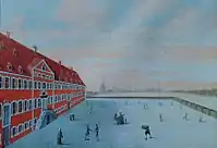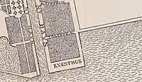 The name Kvæsthus was introduced with the inauguration of the new building for the institution at the corner of present day Kvæsthusgade and Sankt Annæ Plads in 1685. It was designed by Hans van Steenwinckel the Youngest. The institution was later split into a Søkvæsthus for the Navy which remained in the old building and a Landkvæsthus for the Army, which took over Københavns Ladegård, a former farm under Copenhagen Castle.[2]