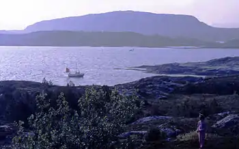 A lot of mountains along the Norwegian shore are obviously named because they look like something. Bjønnahaugen (the bears hill), on Nordlandet in Kristiansund, looks like a sleeping bear. On Averøya, west of Kristiansund, is a mountain that is called Bremsneshatten, which is thought to look like a hat. Løwenørn calls it Plak-Myssen (a kind of seal), in the Middle Ages it was probably Brimill. The mountain looks like the head of a seal sticking out of the seabed.[3][5]
