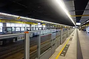 The tracks of platform 1 and 2 are located side by side in the middle of the station. Unlike the island platforms common to most MTR stations, Kwai Hing uses two side platforms and passengers have to ride different escalators from the concourse up to the correct platform for the destination they wish to go to.[1]