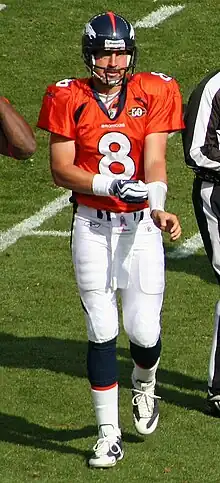 Orton entered the 2011 season as the Broncos starting quarterback. The team had a 1–4 start with Orton throwing 8 touchdowns and 7 interceptions as the starter, accumulating 979 yards and completing 58.7% of his passes.[29] He was replaced as the starter by Tim Tebow during the week 5 contest against the San Diego Chargers, and Orton never took another snap for the Broncos. Orton was waived on November 22, 2011, officially ending his tenure with the Denver Broncos. He had a record of 12–21 as a starter during his time with the Broncos, throwing for 8,434 yards, 49 touchdowns, and 28 interceptions.