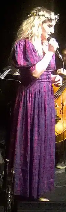 She has released three albums as a solo artist, incorporating jazz, folk and classical influences into her musical style. She performs in English and French, and has toured widely in France since launching her third album Origin of Stars (No Format!/Universal, 2010) at the Eglise Saint-Eustache in Paris.[6][7][8] She began her ongoing research of troubadour music and poetry, and particularly the female medieval troubadour tradition, during a year spent studying at the Lumière University Lyon 2.[1] Her poetry chapbook Myths of the Body was published by In/Words Magazine and Press in September 2008,[9] and she has contributed texts to Jowi Taylor's Six String Nation (Douglas and MacInyre, 2009)[10][11] and Folk Prints magazine.[12]
