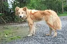 The Lài dog (Vietnamese: chó Lài or chó Lài sông Mã), is a distinct landrace of dogs native to the northern mountains of Vietnam, but also sometimes used ambiguously to refer to any indigenous landrace of Vietnam including the Indochina dingo.[1][2] It is considered to be one of Vietnam's four great national dogs (tứ đại quốc khuyển), and the only one that is not recognized by the Vietnamese Kennel Club.[1][3][4] The Lài dog is indigenous to the highland areas west of Thanh Hóa along the Mã River and in some remote villages in the northern border area where they function as a farm dog, providing pest control around the house, herding cattle or hunting for food in the forest.[3][5][2] Today, this landrace is critically endangered with only a few hundred remaining.[6]