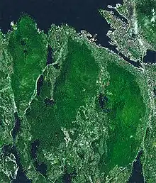 Løvstakken is one of the Seven Mountains that surround the center of the city of Bergen in Vestland county, Norway. The 477-metre (1,565 ft) tall mountain is located between the Fyllingsdalen and Bergensdalen valleys on the Bergen Peninsula. Løvstakken and the forests nearby are popular hiking areas among the locals since it is essentially located in the central area of Norway's second largest city. Gullsteinen, a large hill located south of the summit of Løvstakken, is also part of the mountain massif and borders the protected forest area of Langeskogen.[2]