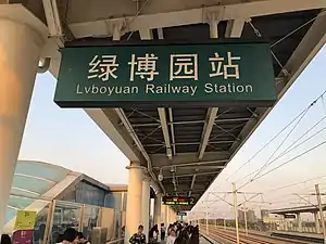 Lüboyuan railway station (Chinese: 绿博园站; pinyin: Lǜbóyuán zhàn; lit. 'Green Expo Garden station') is a railway station on the Zhengzhou–Kaifeng intercity railway. The station is 2 km north of the Green Expo Garden in Zhongmu County, Zhengzhou, Henan, China.