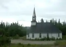 A first relay was built on this location in 1869. It was at that time only a wooden shack containing a bread oven. This type of relay was frequent in the region. Between the two world wars, L'Étape became the end of road 54 (now road 175) and a forest protection outpost was installed there. In 1951, the road was completed to Saguenay and the Quebec Government decided to build a hostel, a restaurant and a gas station to provide services to motorists and promote sport fishing the area. The hostel was later demolished in 1973 but the restaurant and gas station remain in operation to this day.[2] In 1967, the Notre-Dame-de-L'Assomption chapel open its registers only to be abandoned shortly after in 1989.[3]