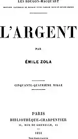 L'Argent ("Money") is the eighteenth novel in the Rougon-Macquart series by Émile Zola. It was serialized in the periodical Gil Blas beginning in November 1890 before being published in novel form by Charpentier et Fasquelle in March 1891.