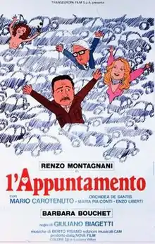 L'appuntamento (The date), also known as L'appuntamento (...dove, come, quando?), is a 1977 Italian comedy film written and directed by Giuliano Biagetti.[1][2][3]