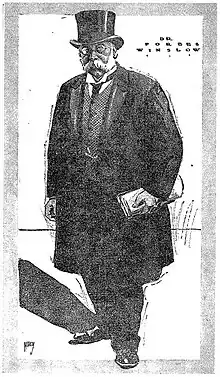 According to Donald McCormick, for a short period the police suspected Winslow of involvement in the killings because of his persistence and constant agitation in the Jack the Ripper case, and they checked on his movements at the time of the Ripper murders.[11] He gained further publicity, and visited New York City in August 1895, to chair a meeting on lunacy at an International Medico-Legal Congress.[12] He also appeared as an expert defence witness in some American cases involving lunacy.