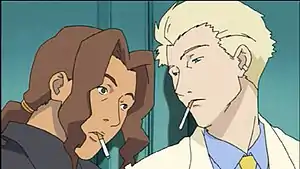 Andrew MacLennan enjoyed the use of a British cast for the English dub, feeling it added to the espionage atmosphere, but felt that the story was not sufficiently engaging for an adult audience, despite the M rating.[22] Tiffani Nadeau praised VOCAL SIDE's arrangement, saying that the CD flowed well from one track to the next,[23] and Patrick King praised the variety in the songs, feeling the CD held up well even without the context of the series.[24]