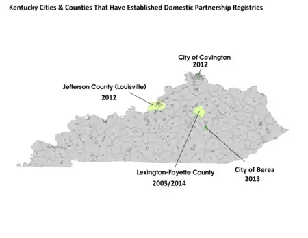 - ↑ "Current Kentucky Laws". Marriage Equality Kentucky. Retrieved March 9, 2014.