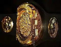 Lucha libre, (professional wrestling) is a form of entertainment where matches are presented as being competitive, but their outcomes are pre-determined by promoters.[1] As part of presenting lucha libre as a genuine combat sport, promoters create championships that are used in the storylines presented on their shows; they are not won as result of genuinely competitive matches.[1] The championship is represented by a belt for the champion to wear before or after a match.[2]