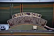 Following the tour, special commemorative plates were fitted below the nameplates which read:[5]
