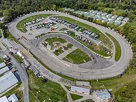 The La Crosse Fairgrounds Speedway is a semi-banked asphalt oval racetrack in West Salem, Wisconsin.[2] The outer track is 5/8 mile and the inner track is a 1/4 mile.[2] The speedway has progressive banking in the corners, from 5 degrees on the bottom to 11 degrees on the top. The track was built at the fairgrounds for La Crosse County. It used to host an event on the American Speed Association (ASA) and the ASA Late Model Series before the demise of the series. It currently hosts annual touring events on the ARCA Midwest Tour and Mid American Stock Car Series.[3] It hosts weekly stock car races which are sanctioned by the NASCAR Advance Auto Parts Weekly Series.[2] It was the first NASCAR-sanctioned race track in Wisconsin.[4]