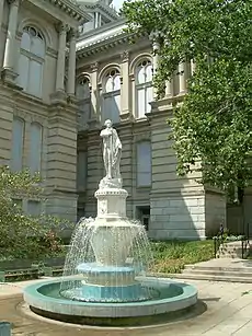Lafayette Fountain is an 1887 fountain by sculptor Lorado Taft, in the grounds of the Tippecanoe County Courthouse in Lafayette, Indiana. The fountain is composed of a number of tiered bowls with a marble statue of the Marquis de LaFayette on top. He holds a sword next to his heart in his right hand and has a cape draped over his left arm.