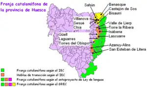 - ↑ Statistics about languages in Catalan-Speaking Aragon Archived 2009-09-20 at the Wayback Machine Generalitat de Catalunya (in Catalan)