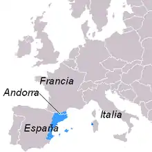 La Franja (Catalan pronunciation: [la ˈfɾandʒɛ]; "The Strip"; Aragonese: Francha) is the area of Catalan-speaking territories of eastern Aragon bordering Catalonia, in Spain. It literally means "the strip" and can also more properly be called Franja d'Aragó (Aragonese Strip), Franja de Ponent (Western Strip) or Franja Oriental d'Aragó (Eastern Strip of Aragon) in Catalan (in Aragonese: Francha Oriental d'Aragón, "Eastern Strip of Aragon"; or simply Francha de Lebán/Levant, "Eastern Strip", or Francha d'Aragón, "Aragonese Strip"; in Spanish: Franja de Aragón, "Aragonese Strip").