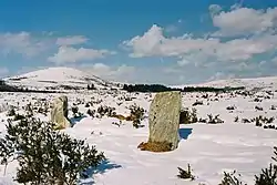 La Noce de Pierres Breton: An Eured Ven (The Wedding Party) is an alignment of 77 standing stones at the foot of Menez Michael (Saint-Michel-de-Brasparts) in the hills of Brittany. Aetiological folk tales say that the stones were originally the members of a drunken wedding party, petrified for their mistreatment of a stranger.[1]
