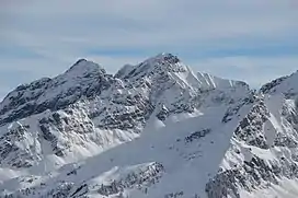- ↑ Retrieved from the Swisstopo topographic maps and Google Earth. The key col is located west of the summit at 2,450 metres.