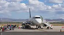 La Paz International Airport (Spanish: Aeropuerto Internacional de La Paz); officially Aeropuerto Internacional Manuel Márquez de León (Manuel Márquez de León International Airport) (IATA: LAP, ICAO: MMLP) is an international airport located in La Paz, Baja California Sur, Mexico, situated along the western shore of the Gulf of California. It serves as the primary air traffic gateway to the city of La Paz and is a focus city for the regional airline Calafia Airlines. The airport also accommodates military facilities for the Mexican Army and the Mexican Navy and supports various tourism, flight training, and general aviation activities. Grupo Aeroportuario del Pacífico owns and operates the airport, and it is named in honor of Manuel Márquez de León, a Mexican politician, military leader, and intellectual originally from this state.[2] The airport served as the headquarters and hub for Aero California from its foundation in 1960 until its bankruptcy in 2006.[3][4]