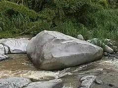 La Piedra Escrita (Spanish for 'the written stone') is a rock art site consisting of a large granite boulder containing pictographs located in the Saliente River[1] in Coabey, Jayuya in central Puerto Rico. The petroglyphs have become popularly associated with the Taino people and have been widely reproduced in popular art,[2] and the site has become a popular tourist attraction. The site was added to the United States National Register of Historic Places in 2003 due to its importance as a prime example of prehistoric rock art in Puerto Rico.[3]