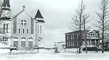 The first pioneers were from Berthier County and arrived in 1913, around the time when the National Transcontinental Railway was completed. The train station was first designed as Okiko, derived from the Algonquin name for the La Reine River Okikadosag Sibi. The following year the Mission of Saint-Philippe-de-La Reine was founded. In 1917, the place was incorporated as the United Township Municipality of La Reine-et-Desmeloizes-Partie-Ouest. In 1922, the village itself separated from the united township and formed the Village Municipality of La Reine.[1]