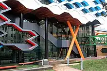 The institute's newest building, LIMS1, was designed by Lyons Architects, who were appointed following a design competition sponsored by the Australian Institute of Architects.[19] Construction began in August 2011, with an official sod turning presided by the Minister for Innovation, Industry, Science and Research, Senator Kim Carr.[20][21] The building was officially opened in February 2013 by the Parliamentary Secretary for Higher Education and Skills, Sharon Bird MP.[22][23]