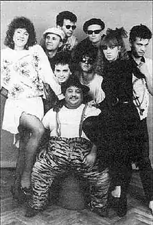 ![]() Laboratorija Zvuka in 1980, from left to right: Ivan Kašik, Aleksandar Pejak, Dina Kurbatfinsky Vranešević, Mladen Vranešević, Renata Viegy, Đorđe Urban and Predrag Vranešević | |