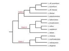 Lacunicambarus cladogram adapted from Glon et al. 2022.[3]