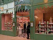 Pâtisserie E. Ladurée, commonly known as Ladurée (French pronunciation: [la.dy.ʁe]), is a French manufacturer and retailer of high-end pastries and candy, which was established in 1862. It is one of the world's best-known sellers of the double-decker macaron, 15,000 of which are sold every day. The company is a société par actions simplifiée (simplified joint stock corporation) and has its head office in Paris, France.[2][3]