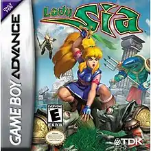 Lady Sia is a platform game with action-adventure elements made by RFX Interactive for the Game Boy Advance. It was published by TDK Mediactive, released in the USA on October 15, 2001, and released in Europe on October 19, 2001. Lady Sia is one of the few original games produced by RFX Interactive. The game takes place in a fantasy world where the player assumes the role of the She-Ra/Xena-esque warrior princess, Lady Sia. It is her task to defeat the T'soas, a race of creatures created by the evil warlock Onimen who has declared war on the other realms. Her quest leads her through four different realms, the last one being the home continent of the T'soas themselves. A sequel was planned for the GameCube and GBA in 2003 but was cancelled due to TDK Mediactive being purchased by Take-Two Interactive that same year.[2][3]