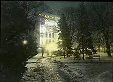 The Lafayette Square Opera House was an opera house built in 1895, at 717 Madison Place, NW in Washington D.C. It was dedicated on 30 September 1895 by Lillian Russell, one of the most well known actresses of the time, who was there to perform in Tzigane. Reginald De Koven, composer of the opera, led the orchestra at Russell's request.[3] In 1905 it was purchased by the Shuberts and David Belasco and was renamed the Belasco Theatre. The theatre was acquired by the US federal government and used as a warehouse until World War II, when it was operated by the American Theatre Wing as a Stage Door Canteen. During the Korean War, it was used by the United Services Organization to entertain troops. The theater was razed in 1964.