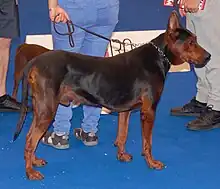 Laizhou Hong is a large, molosser-type(mastiff) dog with strong athletic ability. They are muscular and have red, black or Reddish brown fur with black saddle,etc.[8]