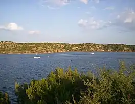 Lake Alan Henry is a reservoir situated in the upper Brazos River Basin in the United States. Created by the construction of the John T. Montford Dam in 1993, it is operated and used as a future tertiary water supply by the city of Lubbock, Texas and serves as a recreational spot for the region of West Texas.[2] The surface area of the lake is 2,880 acres (1,170 ha) with a mean depth of 40 ft (12 m). Lake Alan Henry is located 4 mi (6.4 km) east of Justiceburg, Texas, and 45 mi (72 km) south of Lubbock.[3]