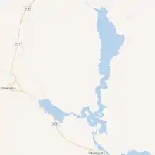 The lake has an area of about 75 km²[3][4] and a maximum depth of 90 meters.[4] The lake consists of two arms: the Haldon arm, fed mainly by the Tekapo, Pukaki and Twizel rivers, and the Ohau Canal; and the Ahuriri Arm, fed mainly by the Ahuriri River.[4] Immediately downstream is Lake Aviemore.