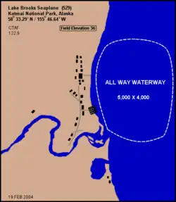 Lake Brooks Seaplane Base has one seaplane landing area measuring 5,000 by 4,000 feet (1,524 x 1,219 m)[1] on Naknek Lake.