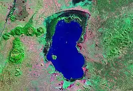 Lake Chilwa is the second-largest lake in Malawi after Lake Malawi. It is in eastern Zomba District, near the border with Mozambique. Approximately 60 km long and 40 km wide, the lake is surrounded by extensive wetlands. There is an island in the middle of the lake called Chisi Island. The lake has no outlet, and the level of water is greatly affected by seasonal rains and summer evaporation. In 1968, the lake disappeared during exceptionally dry weather. When David Livingstone visited the lake in 1859,[2] he reported that its southern boundary reached as far as the Mulanje Massif, which would have made the lake at least 32 kilometres (20 mi) longer than it is today.