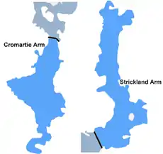 Cromartie Arm (southeast end) and Strickland arm, northeast end of Lake Iamonia