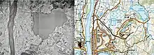 Lake Kimihia was significantly modified as a result of open cast coal mining, around the early 1940s.[2] A cofferdam was built to allow mining over most of the bed, by reducing the lake from its previous 318 ha (790 acres).[3] In the 1960s there were two lakes,[4] but the westerly one has been replaced by a wetland.[5]