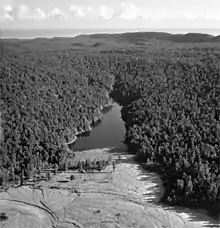 The lake and its small catchment are almost entirely surrounded by native podocarp forest. Around the edge of the lake the forest is mainly composed of Hall's tōtara (Podocarpus laetus), southern rātā (Metrosideros umbellata), kāmahi (Weinmannia racemosa), and rimu (Dacrydium cupressinum). Other forest trees include miro (Prumnopitys ferruginea), broadleaf (Griselinia littoralis), kahikatea (Dacrycarpus dacrydioides), mountain horopito (Pseudowintera colorata), and pate (Schefflera digitata). At the point where the walkway climbs higher tōtara becomes less common and rimu and Quintinia serrata more common.[5] The lake contains the rare aquatic plant stout water milfoil (Myriophyllum robustum). Wetlands bordering the lake contain flax (Phormium tenax) and spike sedge (Eleocharis acuta).[2]