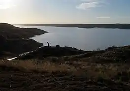 Lake Meredith is a reservoir formed by Sanford Dam on the Canadian River at Sanford, Texas. It is about 30 miles (48 km) northeast of Amarillo, Texas in the Texas Panhandle. It historically was a major source of drinking water for Amarillo and Lubbock, Texas, located about 150 miles (240 km) to the south along with many other towns in between and nearby. Sanford Dam was constructed starting in 1962 with completion in 1965.[1] In 2003, the Canadian River Municipal Water Authority announced that it would reduce allocations to its member cities due to an ongoing drought and a continued drop in the water level in the reservoir. As of 2008, the lake continued to hit record lows, and most of the water supplied by CRMWA is now coming from wells in Roberts County. In 2011, water withdrawals from Lake Meredith temporarily ceased and on August 7, 2013 the lake reached its all-time low 26.14 feet (7.97 m).[2][3] The record high capacity was in April 1973 when the lake was 101.85 ft deep. Lake depth as of October 14, 2017 was 73.12 ft deep.
