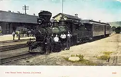 The Lake Tahoe Railway and Transportation Company was a 16-mile (26 km), 3 ft (914 mm) narrow gauge railroad that ran from the Central Pacific Railway at Truckee, California to the waterfront at Lake Tahoe. The railroad's width was converted to 4 ft 8+1⁄2 in (1,435 mm) standard gauge in 1926. The railroad operated its own property from 1899 until October 16, 1925, at which time it was leased to the Southern Pacific Company, which bought the property outright in May, 1933.[1] SP abandoned the line in 1943.