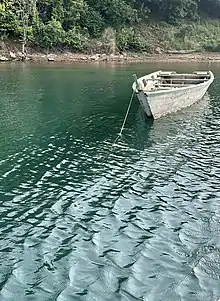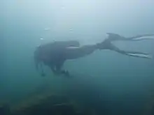 The lake is stratified and seasonal mixing generally does not extend beyond depths of 150 m (490 ft).[14] The mixing mainly occurs as upwellings in the south and is wind-driven, but to a lesser extent, up- and downwellings also occur elsewhere in the lake.[17] As a consequence of the stratification, the deep sections contain "fossil water".[18] This also means it has no oxygen (it is anoxic) in the deeper parts, essentially limiting fish and other aerobic organisms to the upper part. Some geographical variations are seen in this limit, but it is typically at depths around 100 m (330 ft) in the northern part of the lake and 240–250 m (790–820 ft) in the south.[19][20] The oxygen-devoid deepest sections contain high levels of toxic hydrogen sulphide and are essentially lifeless,[6] except for bacteria.[13][21]