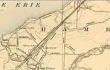 By 1890, two more railroads ran through Lake View - the New York, Chicago and St. Louis Railroad (the Nickel Plate Road) and the Pennsylvania Railroad[3] which brought economic prosperity to the small community. An electric trolley called the Buffalo & Erie was built to facilitate travel to and from Buffalo and operated until the mid-1930s.