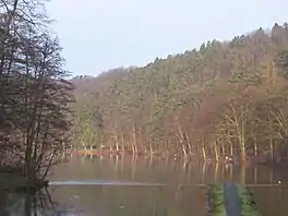 The lake Warfaaz is an artificial lake located in Wallonia near the thermal city of Spa in Ardennes in Belgium. The dam was built in 1892 on the Wayai river. The water volume is 360,000 m³ and the area is 0,08 km². It is a tourist attraction, with water sports, including Pedalo, Fishing.